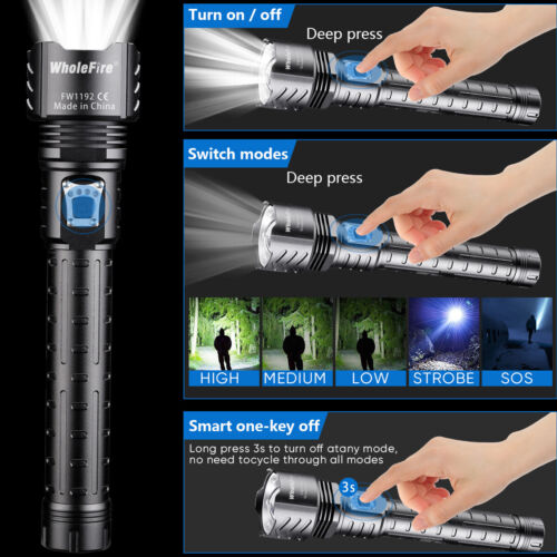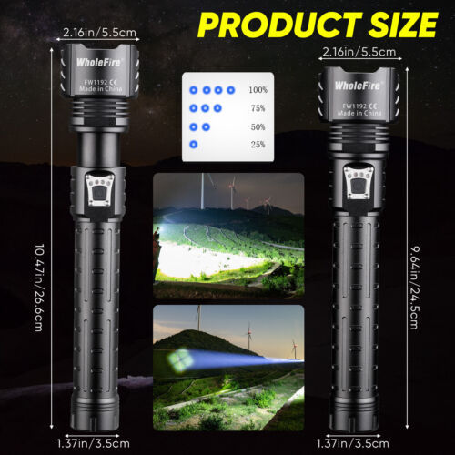 990000LM Powerful XHP90 LED Flashlight USB Rechargeable GB