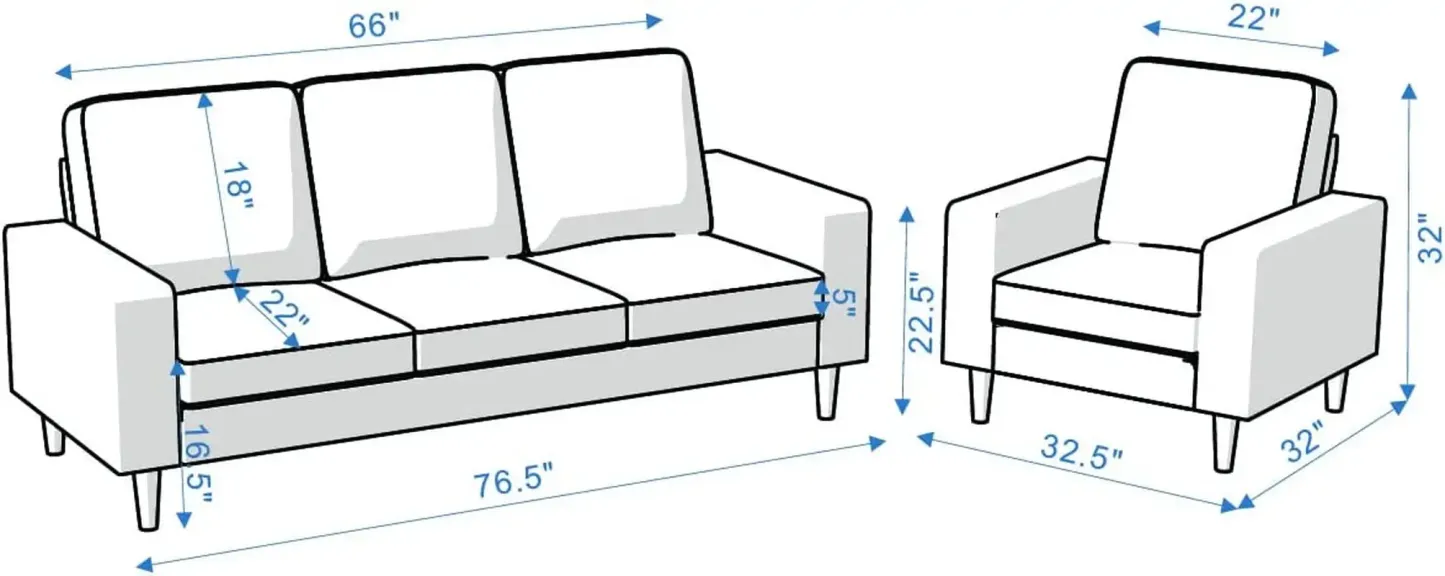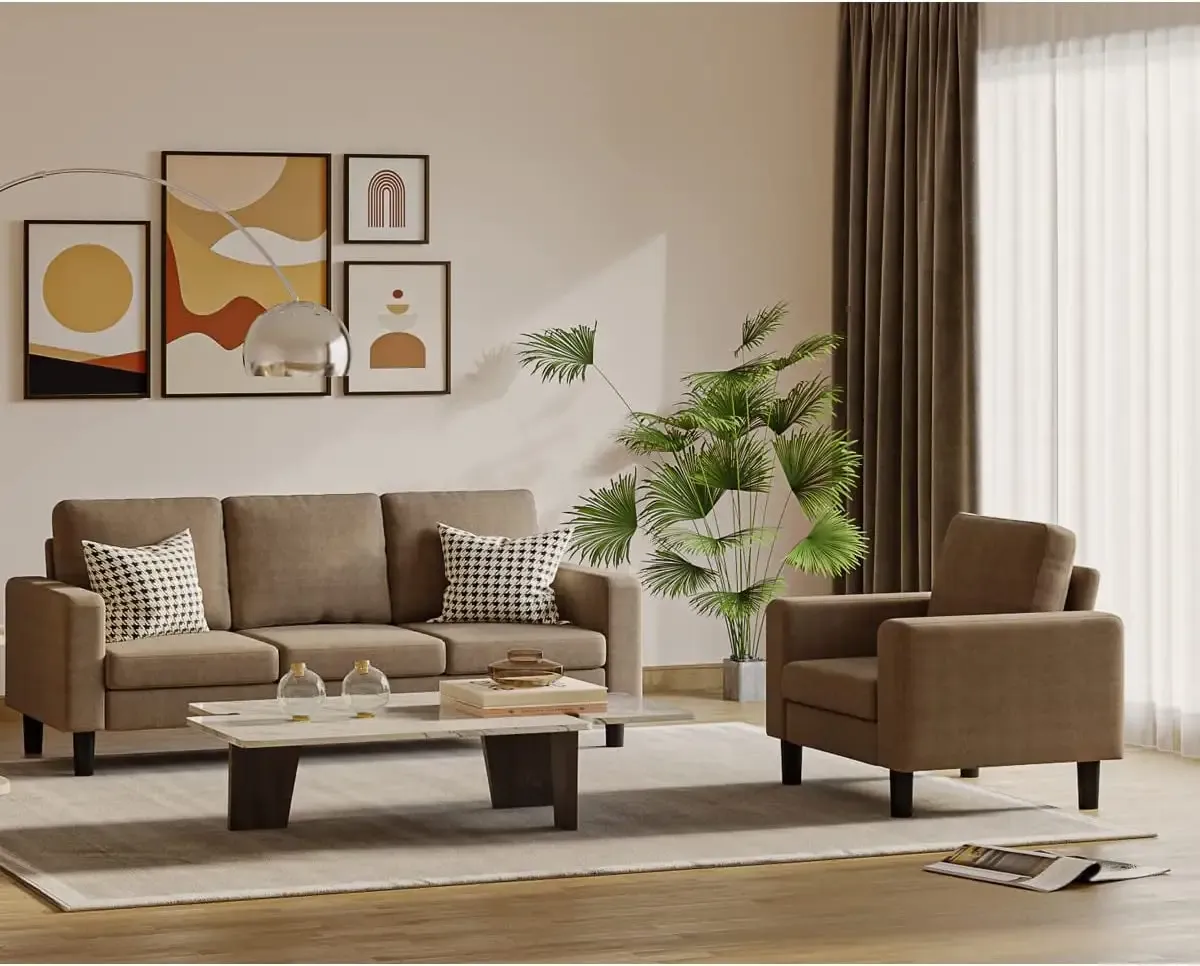 Luckycloud Living Room Sofa Set 2 Piece Modular Sectional Sofa Couch Set, 3 Seat Sofa + Single Arm Chair (Brown)