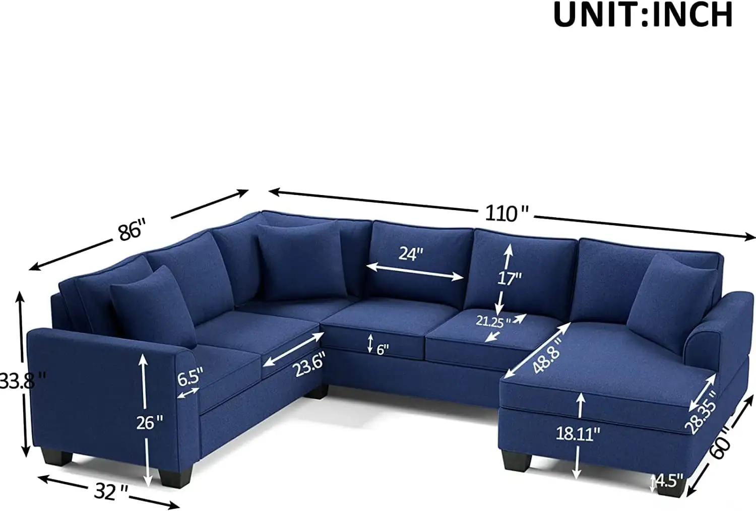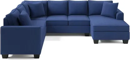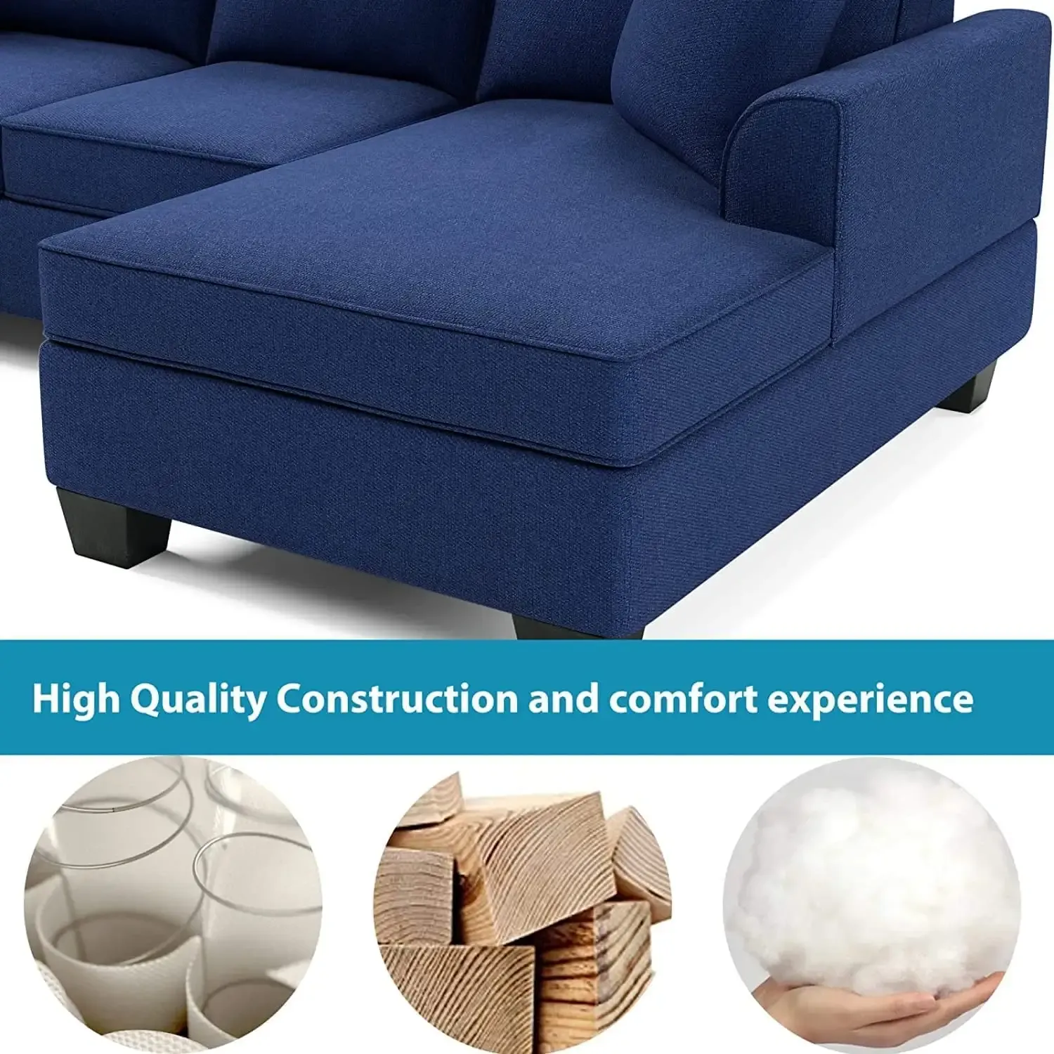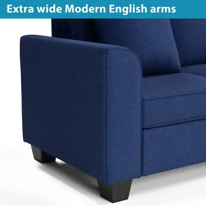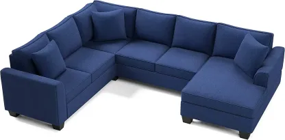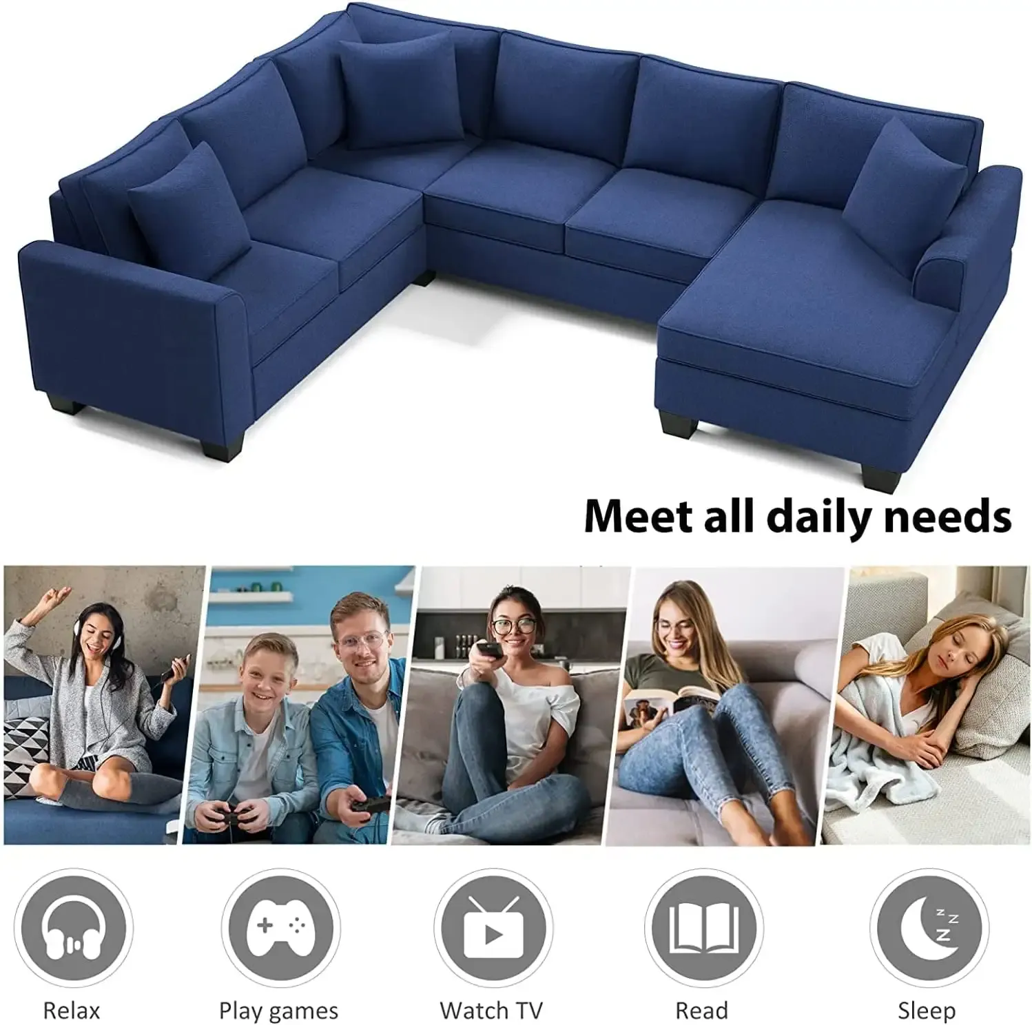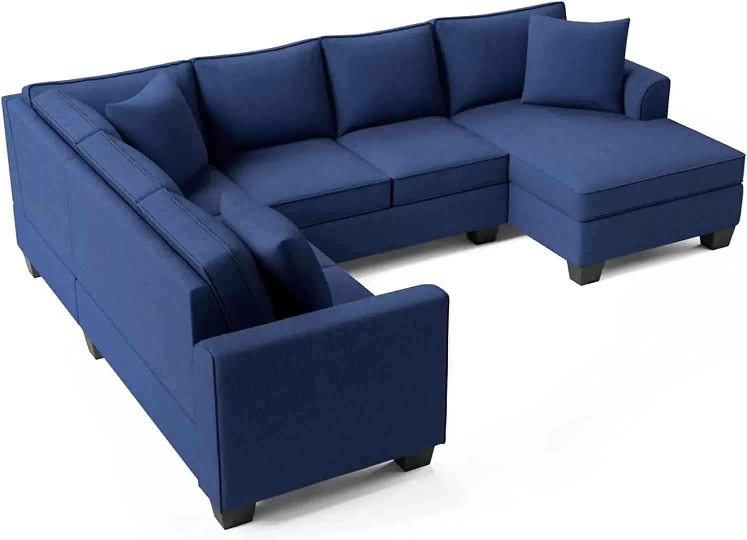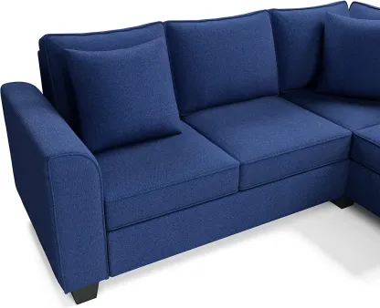 RINIMEI U-Shape Sectional Sofa Tufted Cushion Curved Armrest Reversible Corner Couch W/3 Pillow,3Seatsofa,Loveseat,Chaise Lounge,Polyester Fabric Upholstered Sofá for Living Room Furniture Sets, Blue
